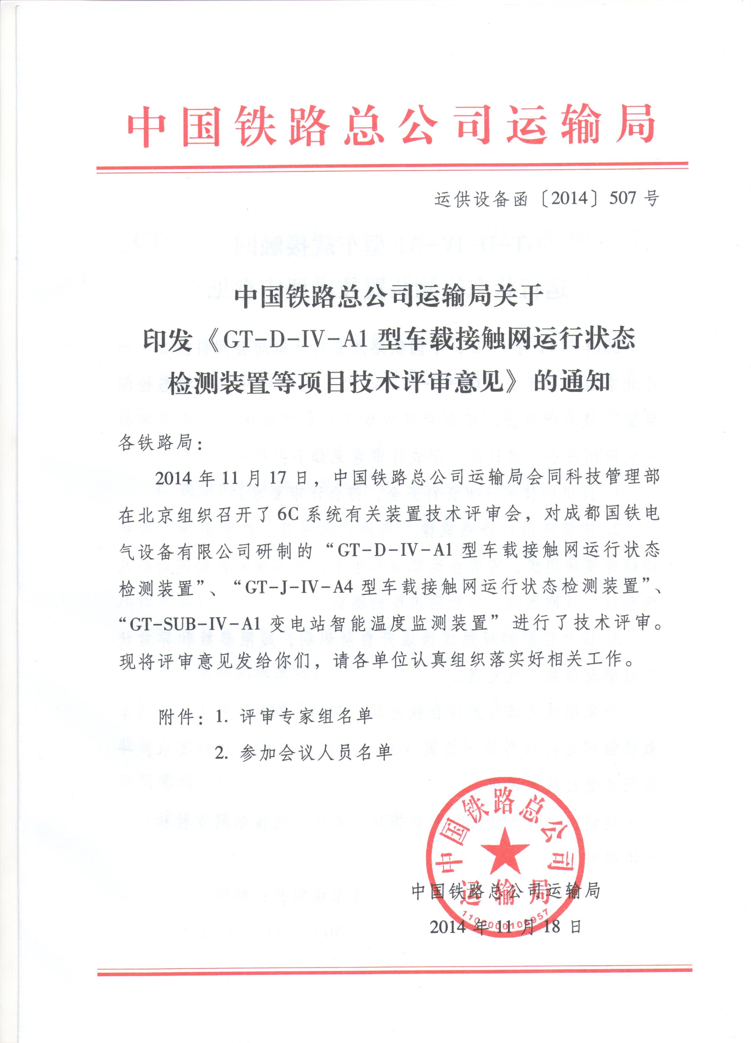 2014.11-铁路总公司在北京召开6C系统技术评审会 2014年11月17日,中国铁路总公司运输局会同科技管理部在北京组织召开了6C系统有关装置技术评审会,对成都国铁电气设备有限公司研制的GT-D-I... 阅读全部 -